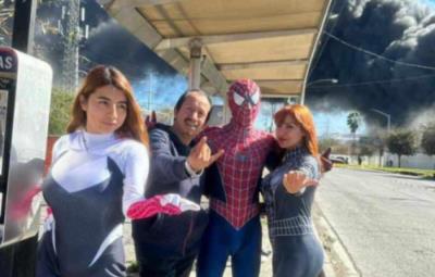 Captan a grupo de amigos disfrazados de Súper Héroes cerca de incendio de 'Inova Plastics' Re en San Nicolás