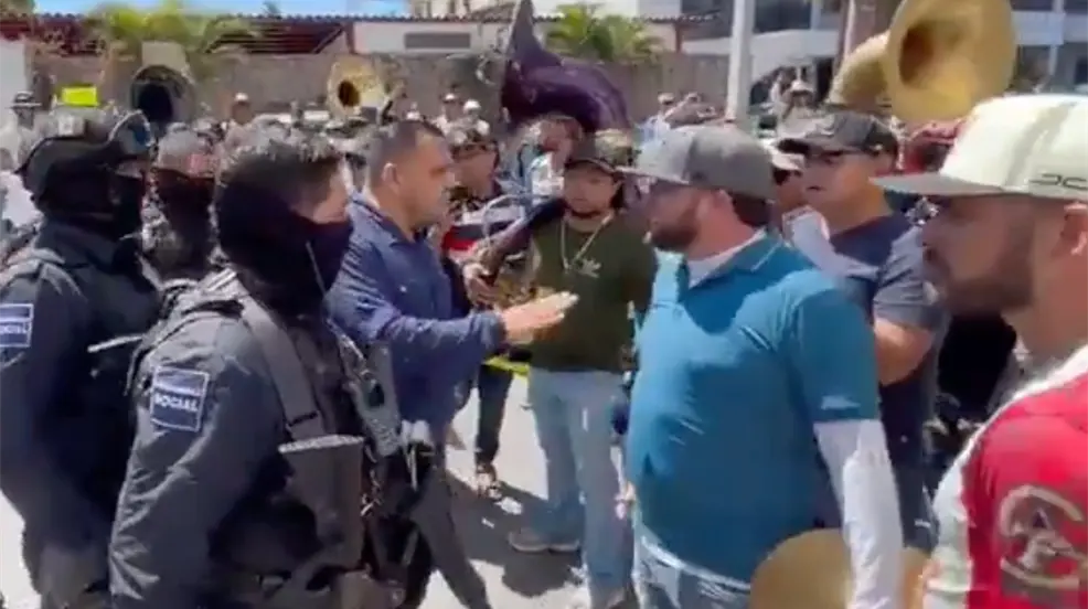 MAZATLÁN, Sinaloa.- Tras haberse dado a conocer que la industria hotelera del estado prohibió la interpretación de la música de banda en las zonas de playa, los intérpretes del género salieron a manifestarse en las calles de Mazatlán para protestar en contra de las nuevas medidas impuestas. Luego de que se informara a las autoridades sobre lo ocurrido, elementos policiacos acudieron al punto de reunión para hacer frente a los músicos y tratar de detener la manifestación, sin embargo, no lo hicieron de una forma pacífica y terminó desencadenando un altercado que llegó a las agresiones físicas.