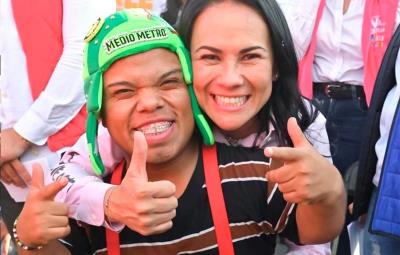 ¿Medio Metro político? Alejandra del Moral se toma foto con influencer en mitin