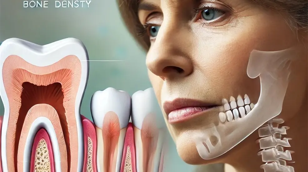 Pérdida de densidad ósea: La reducción de estrógeno está asociada con una pérdida de densidad ósea, lo que puede afectar la mandíbula, haciéndola más susceptible a la pérdida ósea alrededor de los dientes, lo que puede aumentar el riesgo de periodontitis (enfermedad de las encías) y pérdida dental.