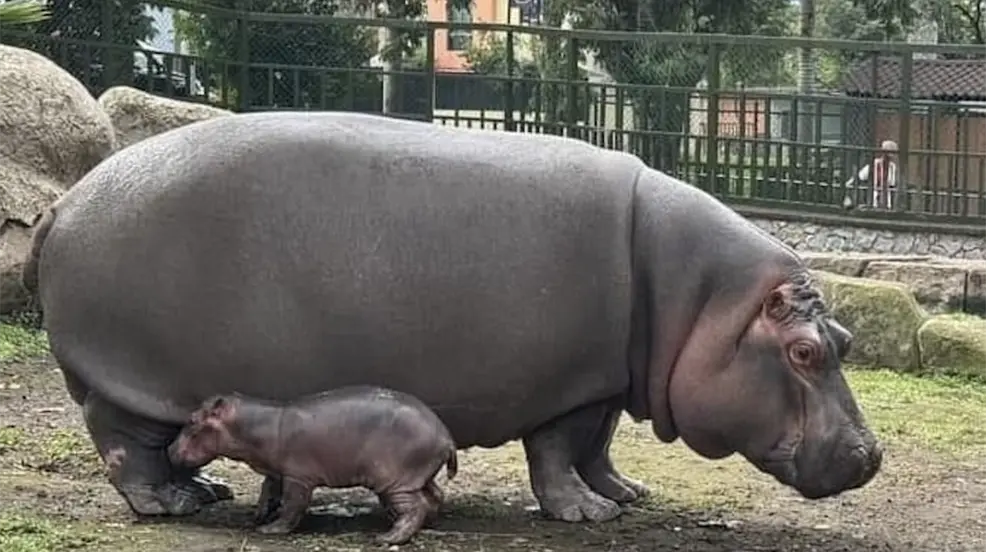 Ahí ya vivía 'Gloria', la hipopótamo hembra con la que procreó a este pequeño hipopótamo que todos esperan resista el tratamiento y siga creciendo sano y fuerte como sus padres.