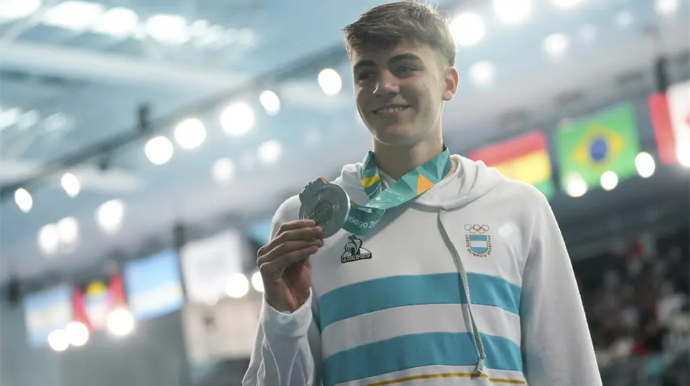 SANTIAGO, Chile.- Joven nadador argentino, Ulises Saravia, sorprende al ganar medalla de plata en los Juegos Panamericanos en la categoría de natación.