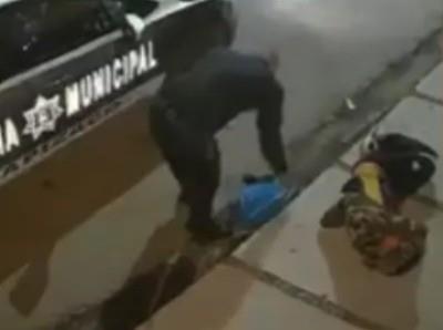 Mediante redes sociales, se filtró el video en que un oficial se acerca a una persona que se encuentra en la banqueta, pero, en lugar de ver su estado de salud, lo que le llama la atención al policía es la mochila que está a un costado del hombre.
