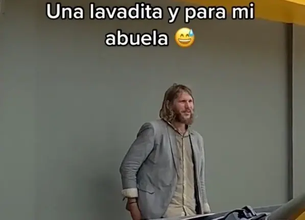En TikTok se compartió un video que muestra a este hombre que luce el cabello largo, así como la barba. Además, que está vestido de manera formal, ya que tiene una camisa beige y un saco de color gris.