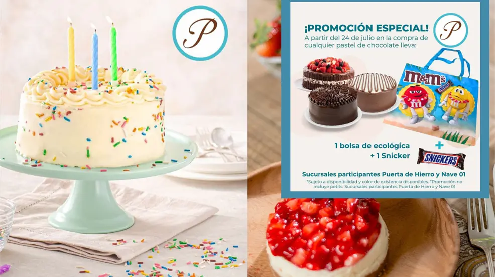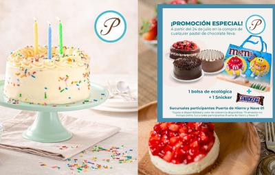 Dicha promoción destaca que en la compra de tu pastel de chocolate favorito, te podrás llevar una bolsa ecológica M&M's y un chocolate Snickers.