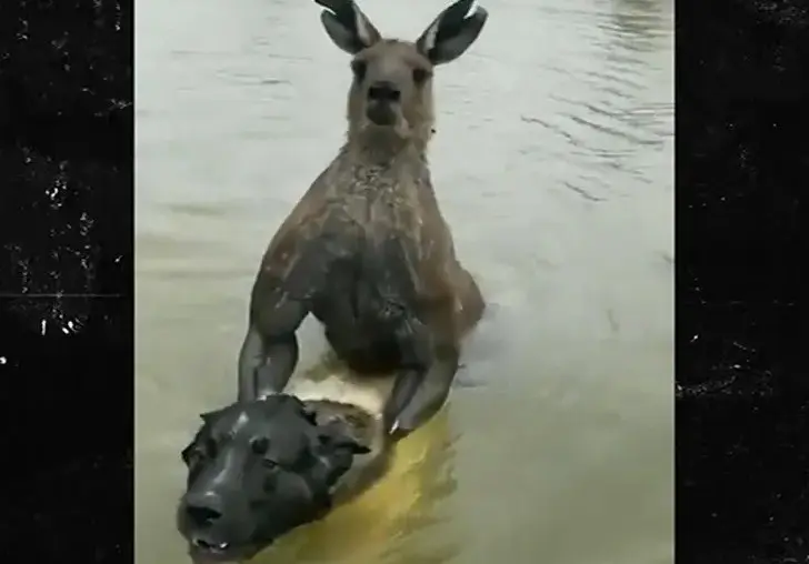 Una salvaje pelea tuvo lugar entre el canguro y un hombre, todo para salvar a su perro que estaba en peligro de morir ahogado.