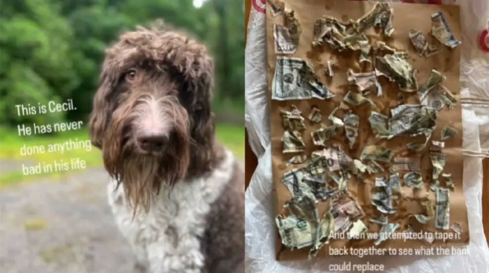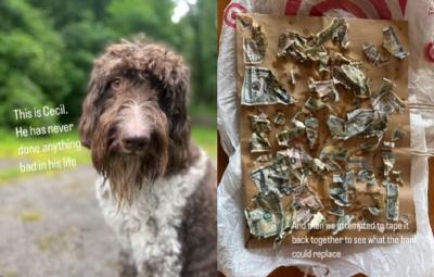 Un perrito de la raza goldendoodle de nombre 'Cecil' aprovechó un descuido de sus dueños para comerse 4 mil dólares; sin embargo, lograron recuperar su dinero.