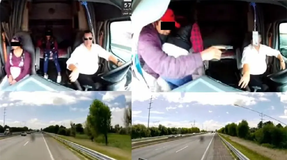 La situación fue captada por una cámara de seguridad instalada al interior de la cabina del tráiler y en las imágenes se puede observar cómo el conductor del tráiler va platicando con las 2 mujeres, una de ellas sentada en el asiento de copiloto y la otra en el camarote. Momentos después una de las mujeres le indica donde bajarlas a lo que el operador de la pesada unidad se orilla en un acotamiento.