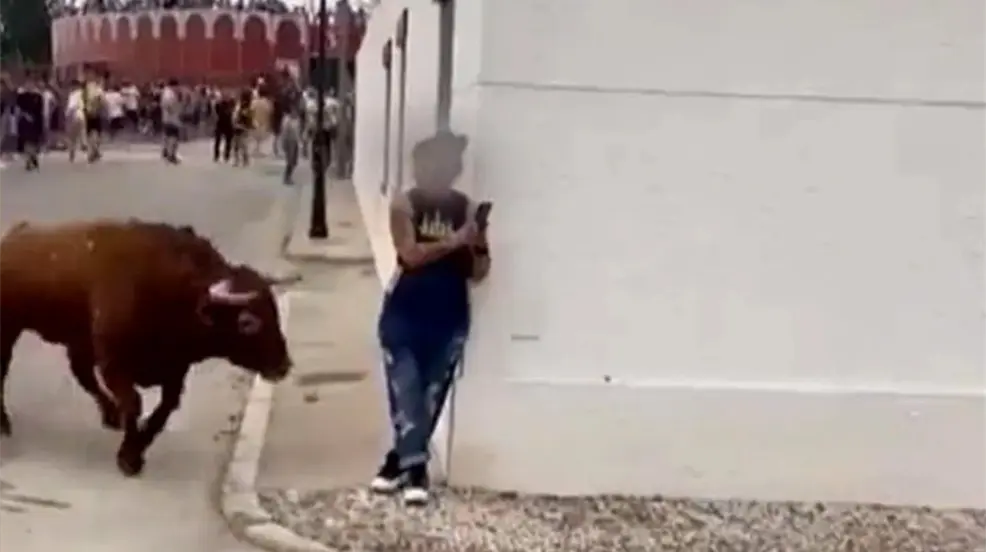 Durante las Fiestas de San Fermín, un toro embistió a una mujer que estaba distraída con su celular en España.