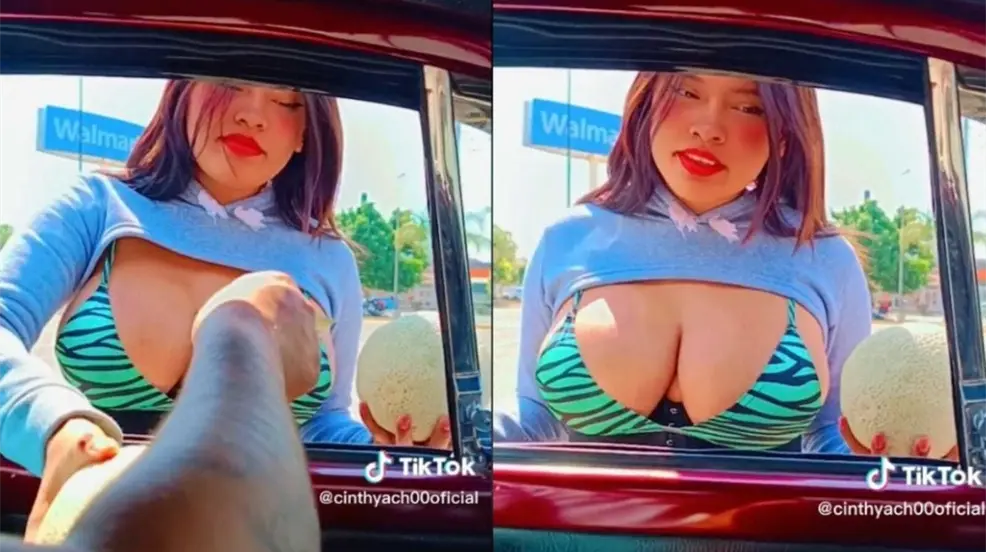Una joven vendedora de frutas utiliza “sus melones” como su estrategia para vender todas las frutas.