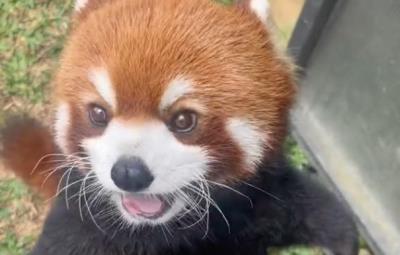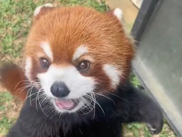 ¡Que lindo! Pandita rojo emite ternura al recibir trozos de manzana