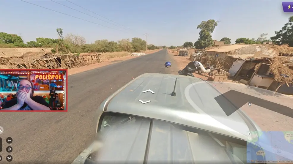 Lo mas bestia que me he encontrado en Geoguessr en directo: El coche de Maps atropellando una persona en Senegal".