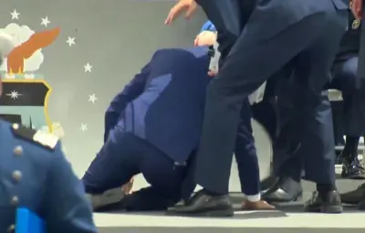 Se cae Joe Biden en evento de graduación de elementos de la Fuerza Aérea