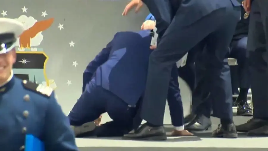 El presidente de Estados Unidos, Joe Biden, tuvo una caída durante una ceremonia de graduación de elementos de la Fuerza Aérea estadounidense.