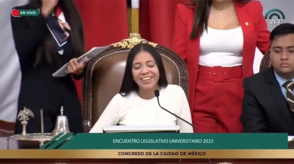 CIUDAD DE MÉXICO, México.- Durante el último día del Encuentro Legislativo Universitario 2023, celebrado en el Congreso de la Ciudad de México, una joven quien se desempeñaba como presidenta de la Mesa Directiva, captó la atención de las redes sociales al cometer un error al pronunciar el apellido del diputado Carlos Eduardo Vega López.