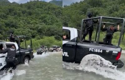 ¡Si no es razor, pa! Patrulla de Fuerza Civil se queda atrapada en el río Pilón