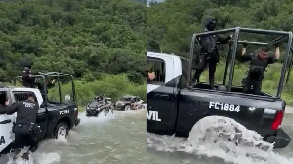 MONTEMORELOS, Nuevo León.- Un emocionante video se ha vuelto viral en la popular red social Tiktok, mostrando el momento en que una patrulla de Fuerza Civil quedó atrapada en las aguas del río Pilón.