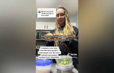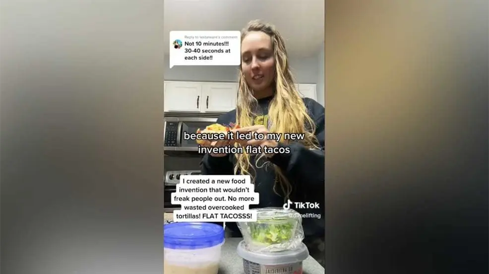 ESTADOS UNIDOS.- Con la idea de no desperdiciar las tortillas que se van haciendo duras, una influencer estadounidense aseguró haber inventado un nuevo platillo, los tacos planos.