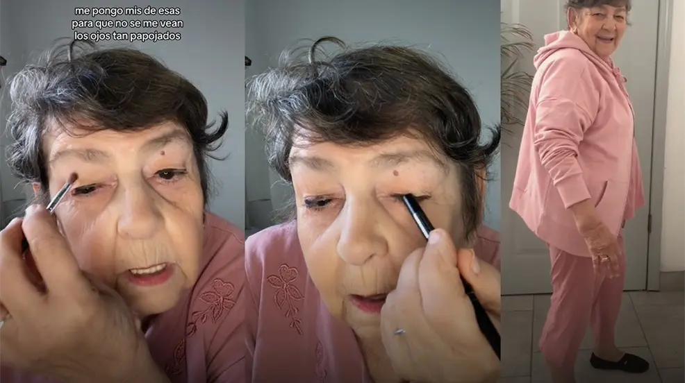 La abuelita también se maquilla los párpados para que se vean más vivos y se pinta la raya del ojo para evitar lucir vieja.