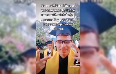 Un joven indicó que tras hacer una broma en Tiktok, la Universidad Nacional Experimental de la Fuerza Armada Nacional Bolivariana le invalidó su título como enfermero