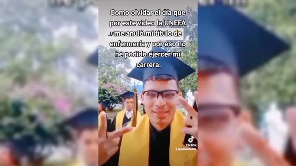 VENEZUELA.- Un joven estudiante de la Universidad Nacional Experimental de la Fuerza Armada Nacional Bolivariana (UNEFA), realizó una broma en Tiktok, causando que la institución le invalidara su título profesional.