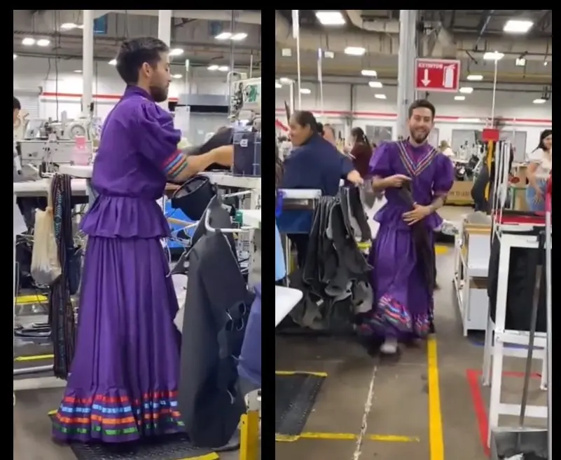 En este caso, Uriel Hernández, decidió llevar su orgullo a otro nivel y se presentó en la maquila donde trabaja luciendo un vestido típico.