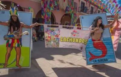 Las imágenes de la Lotería Mexicana Humana en Facebook se hicieron virales cuando el Grupo de los Cachondos desfillaron en el Carnaval de Putla en Oaxaca.