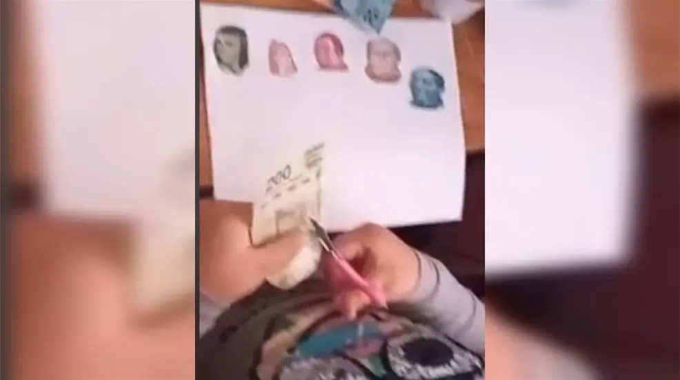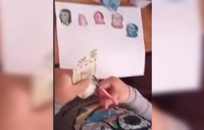 VIDEO: Niña recorta billetes para poder terminar su tarea