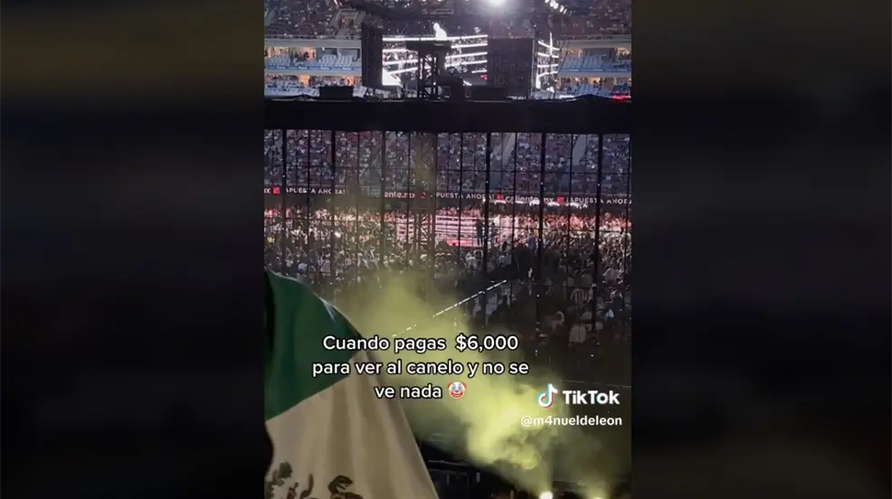 Con la descripción “Cuando pagas 6 mil pesos para ver al Canelo y no se ve nada”, se muestra la vista parcial que tenían los aficionados en esa zona ya en la parte bajo del estadio, pero en ringside.