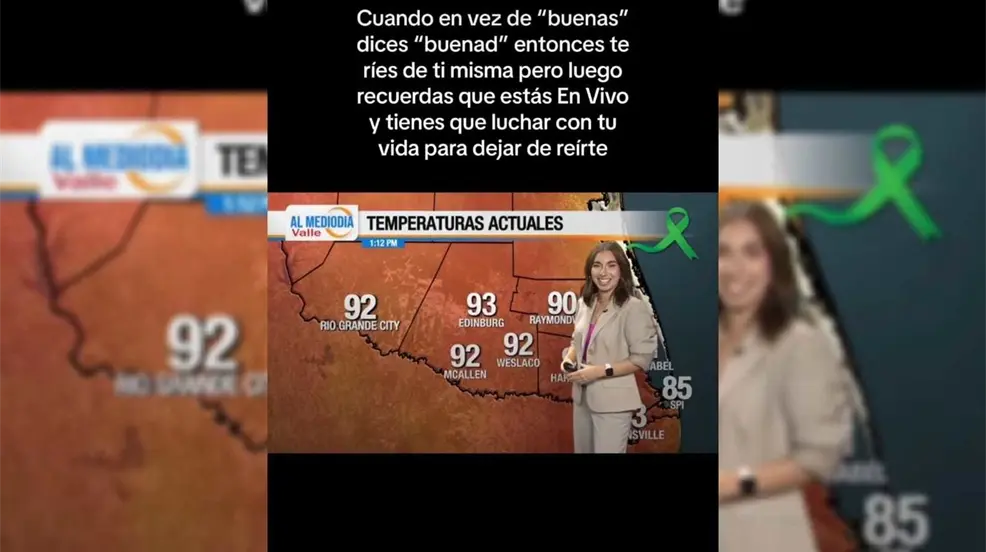 El hilarante episodio ocurrió en el estudio de Noticias RGV, ubicado en el hermoso Rio Grande Valley, Texas. Mientras Valeria López brindaba el pronóstico del tiempo, una pequeña confusión verbal hizo que la presentadora no pudiera contener la risa. Su reacción espontánea y contagiosa fue captada por las cámaras y compartida en TikTok, donde rápidamente se volvió viral.