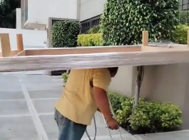 MONTERREY, Nuevo León.- Si conoces a alguien que se queje de cosas simples, es porque no valores tu vida pero este abuelo que no tiene una pierna y que solo puede moverse con muletas, carga un mueble que parece ser una mesa.