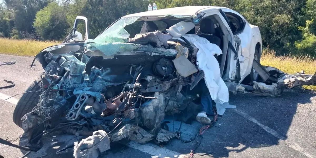 El impacto fue de tal magnitud que ambos vehículos, un Dodge Charger y un tráiler, sufrieron severos daños materiales, quedando prácticamente destrozados.