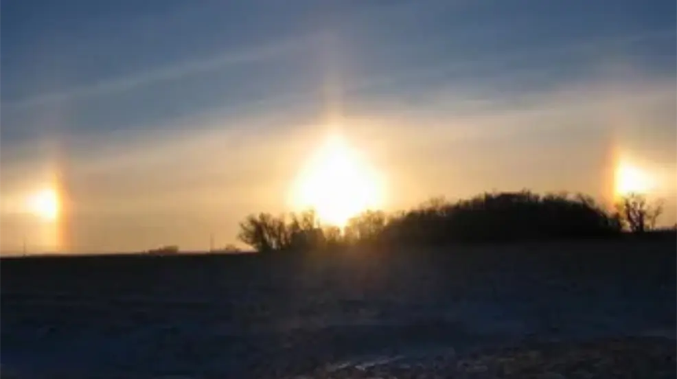 El parhelio aparece cuando la luz del Sol atraviesa cristales de hielo suspendidos en nubes altas, especialmente del tipo cirros. Estos pequeños cristales funcionan como diminutos prismas que desvían y reflejan la luz, creando puntos brillantes a los lados del astro. El resultado es tan espectacular que, para los ojos no entrenados, parece que hay dos o incluso tres soles en el horizonte.