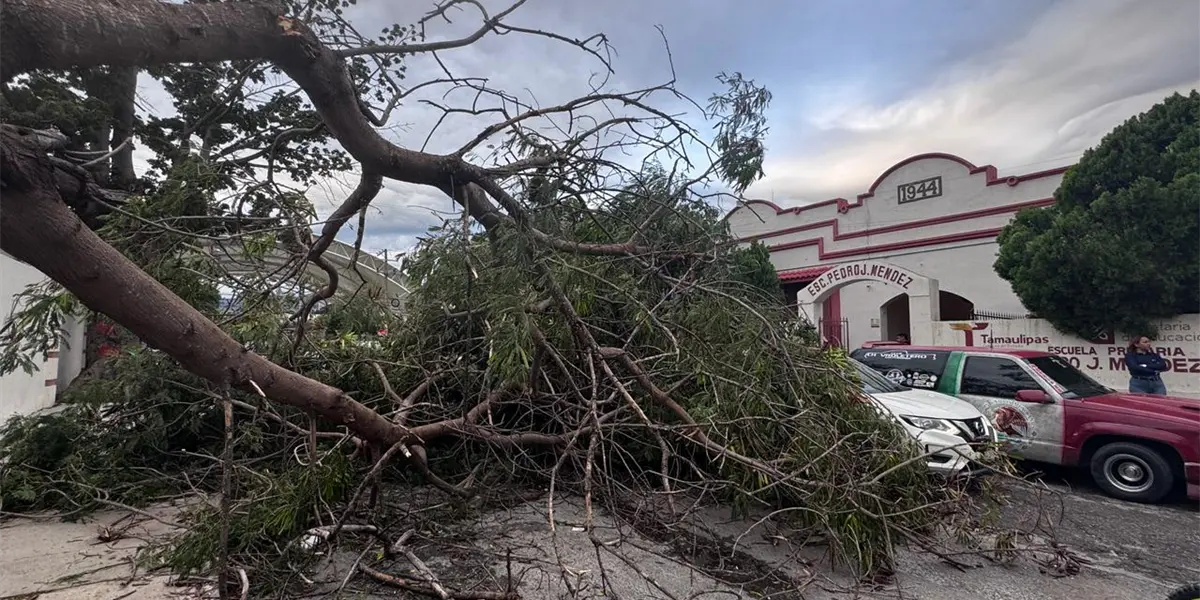 Protección Civil de Victoria reportó la caída de al menos seis árboles de gran tamaño y un poste de energía eléctrica en diversos sectores de la capital tamaulipeca, interrumpiendo vialidades y poniendo en riesgo a la población.
