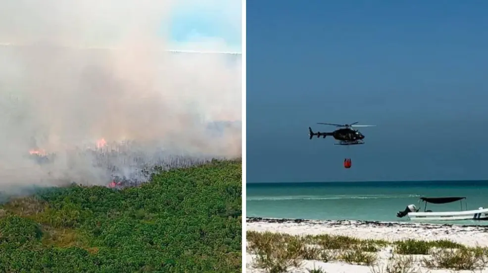 En un comunicado, el presidente municipal Nivardo Mena informó que dependencias de los tres niveles de gobierno concluyeron con éxito los trabajos de sofocación del incendio forestal en la ensenada de Holbox al lograr el 100% de liquidación y control.