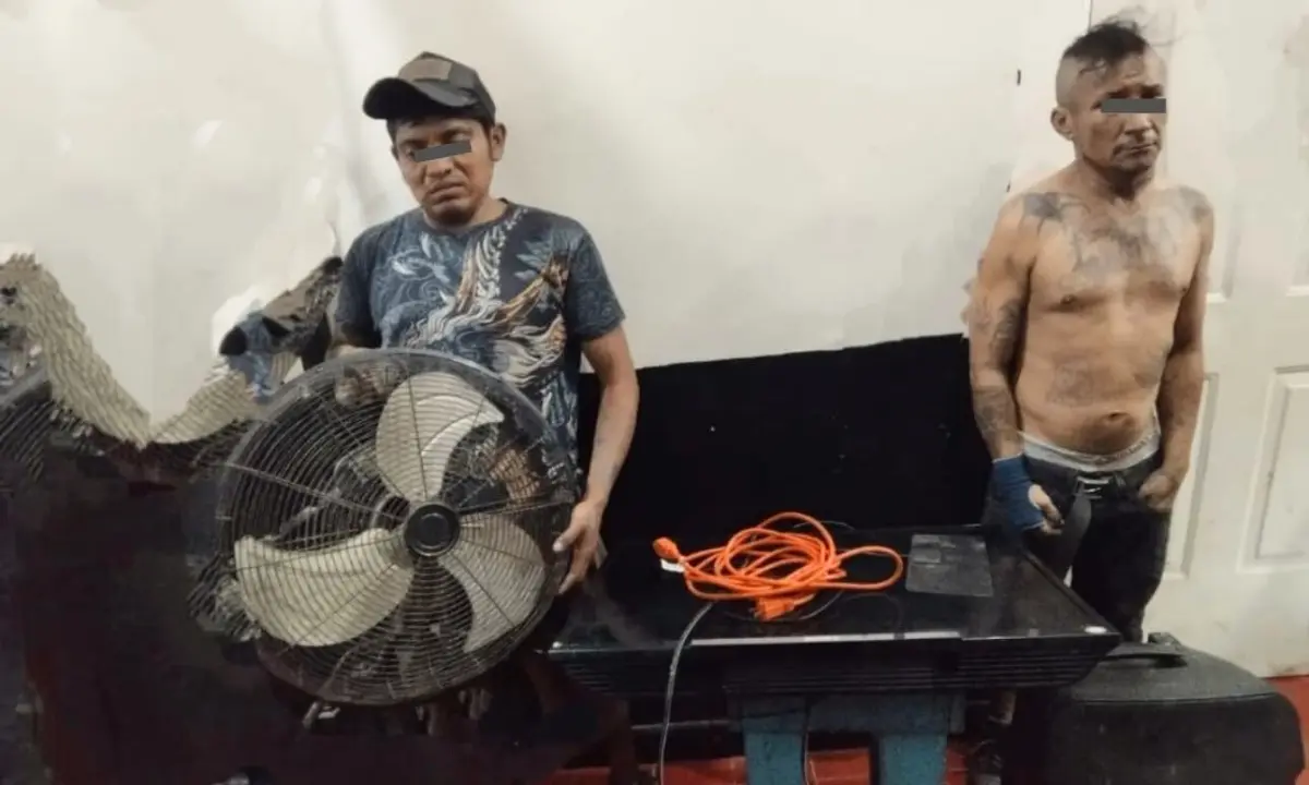 Robo en Umán: policía municipal recupera pantalla y bocinas y captura a dos presuntos ladrones