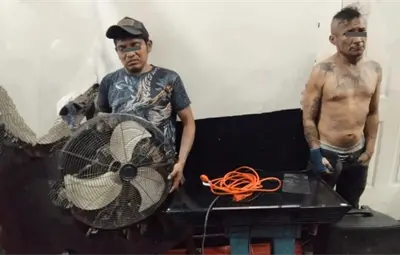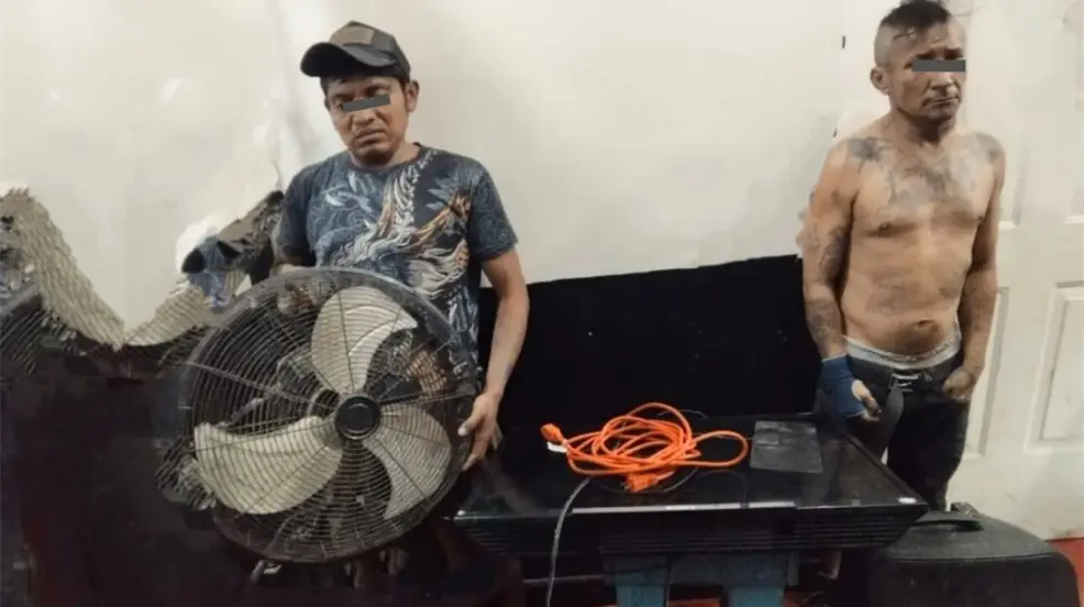 Los detenidos fueron identificados como Alfredo Alejandro L. A., de 44 años, alias “Gary”, y José Enrique H. C., de 29 años. Posteriormente, el gerente de Sopori acudió a la comandancia, donde reconoció la pantalla, el ventilador, las bocinas y la cablería recuperada como propiedad de la empresa.